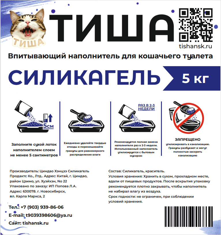 Впитывающий силикагелевый наполнитель для кошачьего туалета "ТИША СИЛИКАГЕЛЬ" — это премиальное решение для гигиены вашего питомца на основе высококачественного силикагеля.